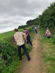 With such a big team, we were able to clear a huge section of the path – with groups covering both sides, wading through long grass, nettles and other hard to tackle undergrowth that had taken over the fence. Armed with large, sword like blades to cut down the plants, and hefty forks to scrape them way, the team tirelessly hacked and raked all morning. Â