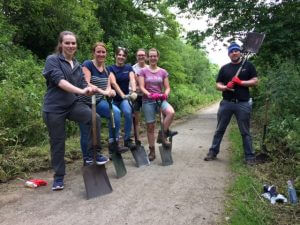 A team of volunteers from Poole Alcock joined the Cheshire East Rangers on Saturday morning to help tidy and clear a section of the Wheelock Rail Trail in Sandbach. As part of our continued commitment to community projects, our team of volunteers helped to clear a section of land behind the platform area of the trail, remove weeds and rubbish from the path and generally tidy up. Anna Burns, Partner at Poole Alcock said “It was lovely to be outside in the sunshine helping out the Rangers, knowing that we’re doing something useful for the environment that we live in. The Rangers have such a large area across South Cheshire to maintain, it’s virtually impossible to keep on top of everything all the time. Offering up our services for a few hours has helped them achieve a bit more today than what they had planned to do by themselves, which is great. We all share the same environment and so we’re more than happy to help out, especially when the sun is shining!” Before the team got to work… …and after! The team also cleared the steps leading down from the Rail Trail to the river below. These steps were then filled with aggregate to keep them level. Another area of the path was filled with aggregate to smooth out a depression in the path which tends to flood in wet weather. Finally, the team used shovels to remove grass and weeds and extend the width of the path in a 100m section, to allow more space for dog walkers, cyclists and visitors to the area. Thank you to Eve Lakin, Verity McKay, Serena Mawson, Helen Stoller and Anna Burns who gave up their Saturday morning to help out. We love the community that we work in and it is great to be able to help with a project that is beneficial to everyone in our local area.